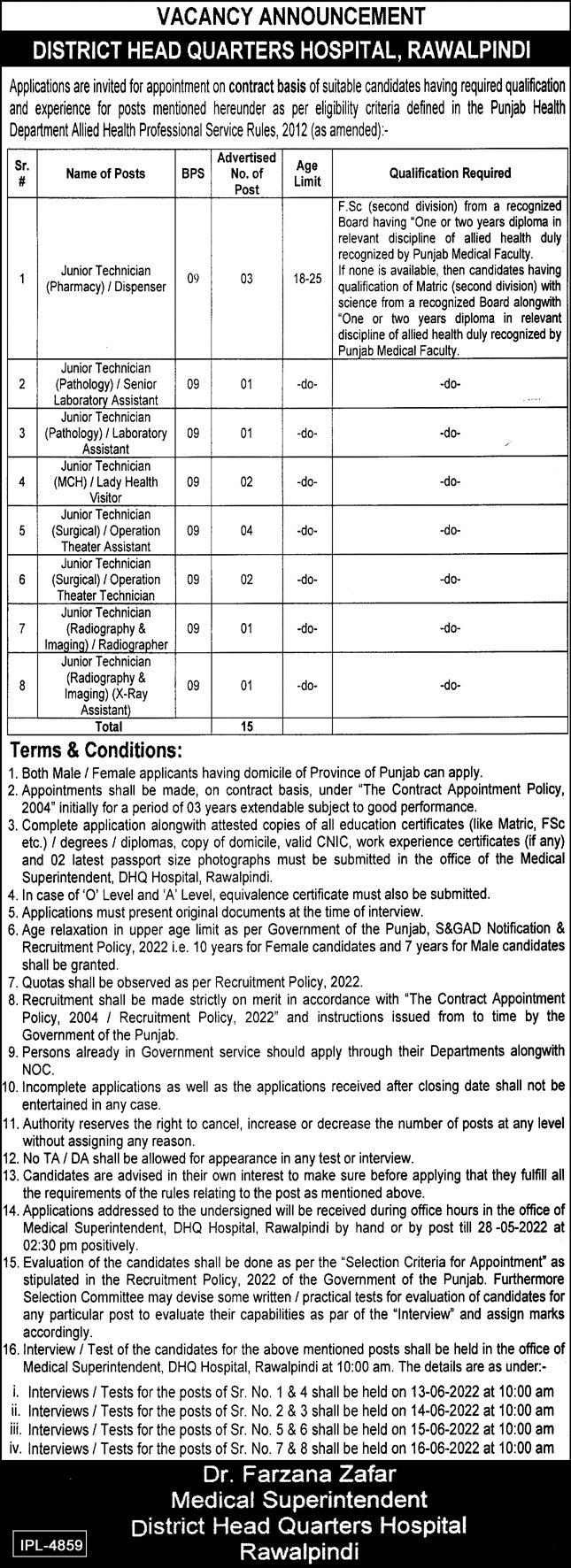 Govt. Dept : DISTRICT HEAD QUARTERS HOSPITAL , RAWALPINDI