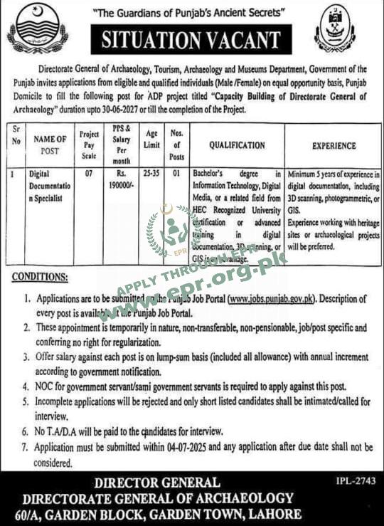 Bachelor's degree in Information Technology, Digital Media, or a related field from HEC Recognized University certification or advanced training in digital domcumentation, 3D scanning, or GIS is advantage.