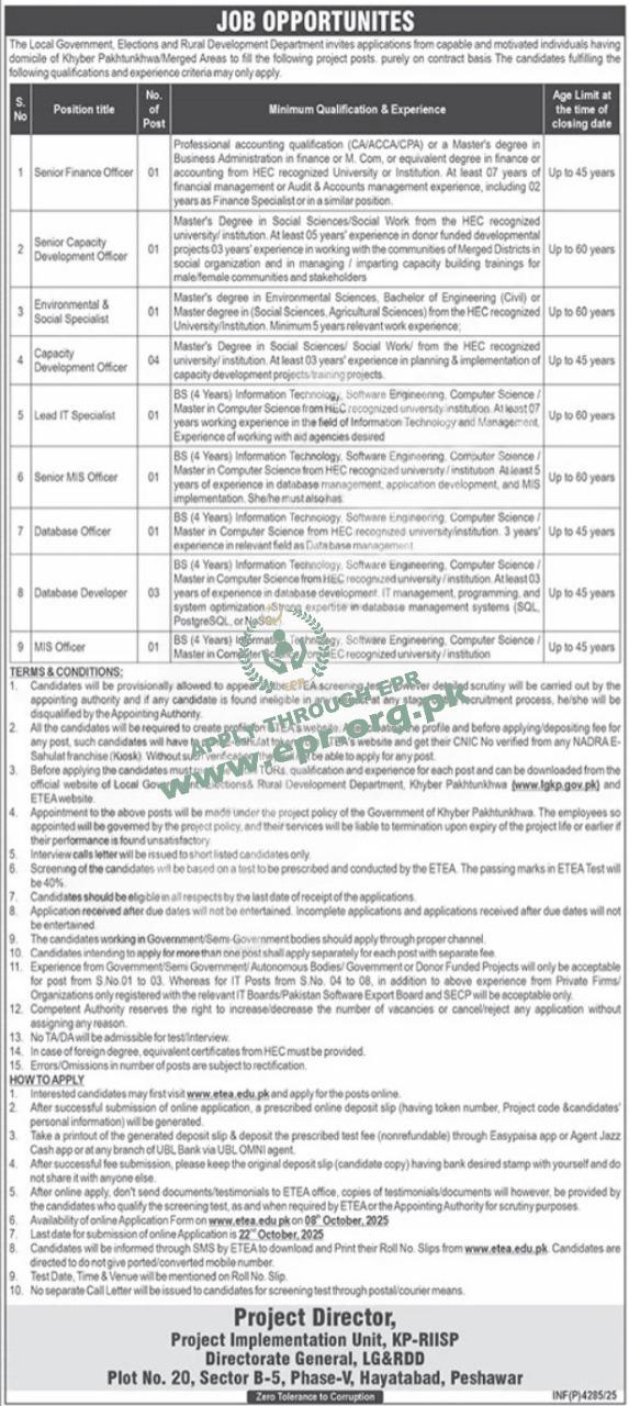 01 Master in Computer Science from HEC recognized university institution. 3 years Up to 45 years experience in relevant field as Database management.
