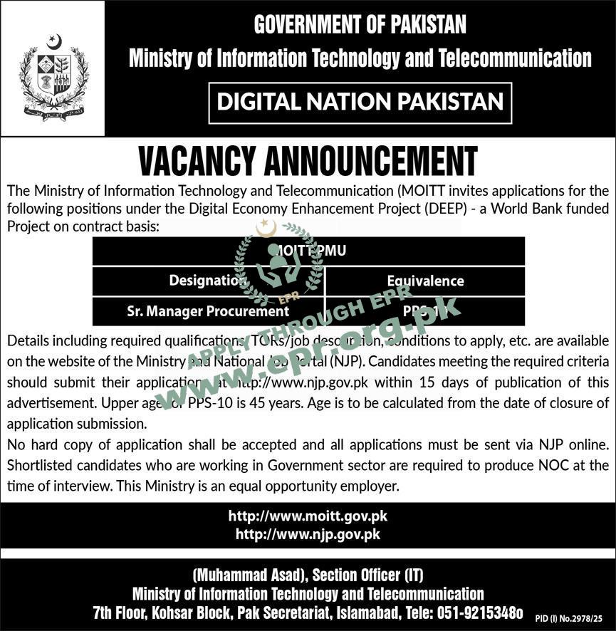 1) Minimum 16 years of education from a reputable/ HEC-recognized university in Business Administration, Supply Chain Management, or related field. 2) Professional post-qualification work experience of a minimum of 7 years in procurement, with substantial experience managing procurement in public and/or private sector projects or large-scale initiatives. 3) Previous experience with World Bank or other international donor-funded projects is highly preferred. 4) Relevant professional certifications in procurement such as Certified Purchasing Manager (CPM) or Certified Professional in Supply Management (CPSM) are advantageous.