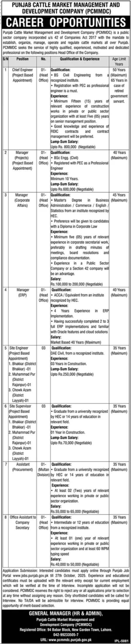 Govt. Dept : PUNJAB CATTLE MARKET MANAGEMENT AND DEVELOPMENT COMPANY (PCMMDC)