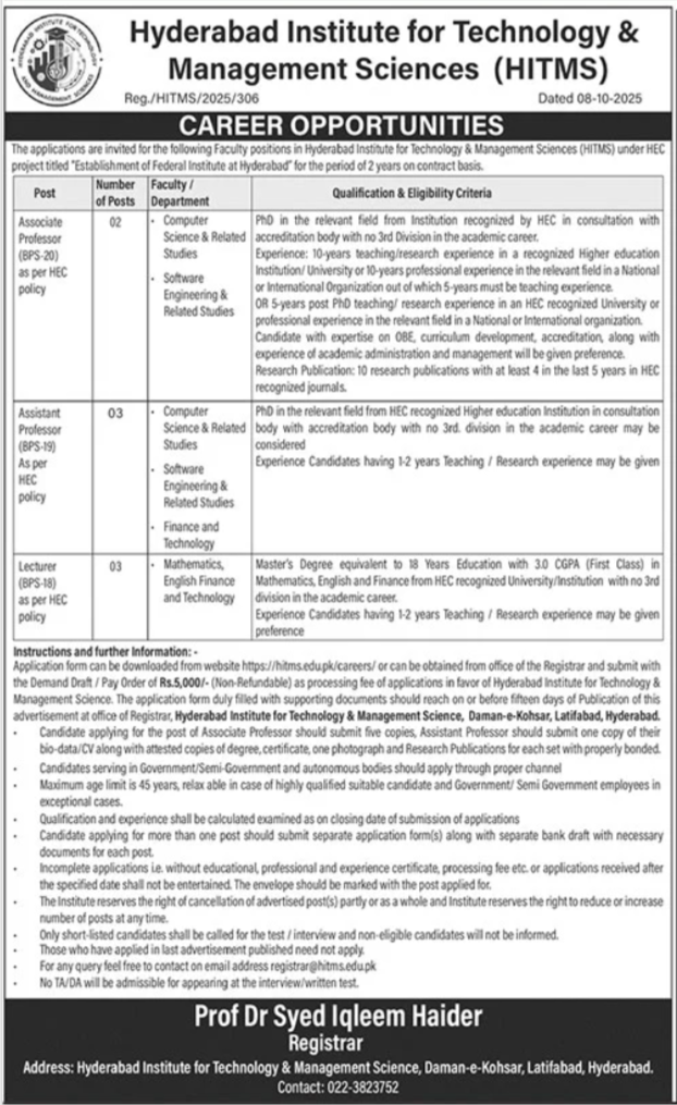 Master's Degree equivalent to 18 Years Education with 3.0 CGPA (First Class) in Mathematics, English and Finance from HEC recognized University/Institution with no 3rd division in the academic career.