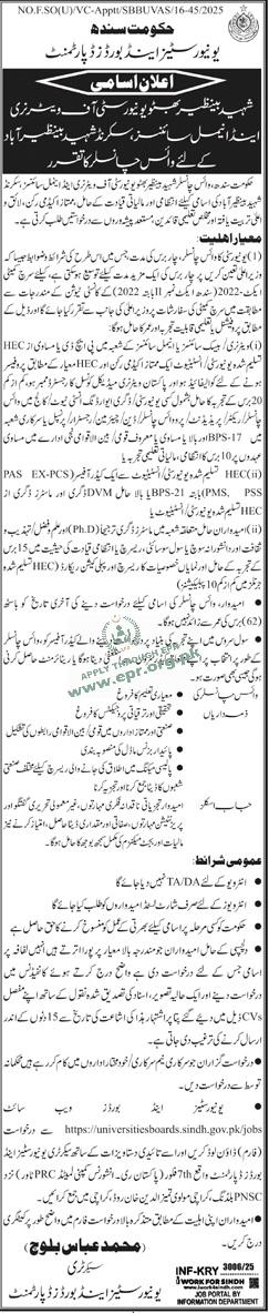 Ph.d in Basic Sciences or Animal Sciences/ Veterinary/ from HEC recognized Univerisity.