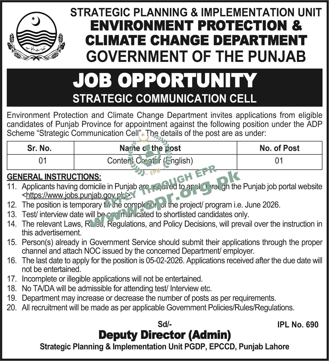 Govt. Dept : Environment Protection & Climate Change Department, Punjab