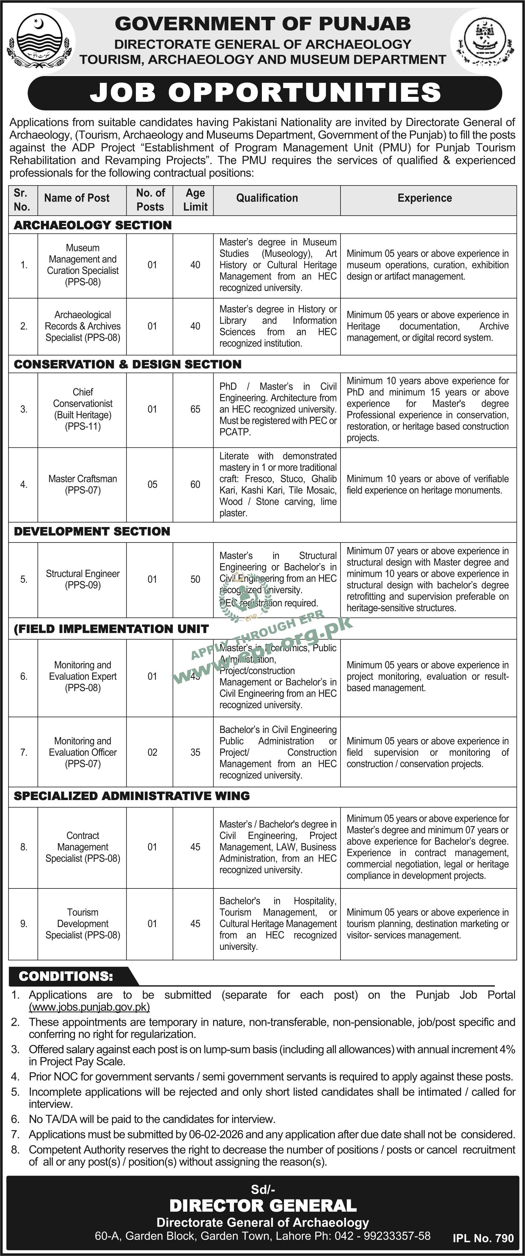 Govt. Dept : Directorate General of Archaeology (Tourism, Archaeology and Museum Dept.) Punjab