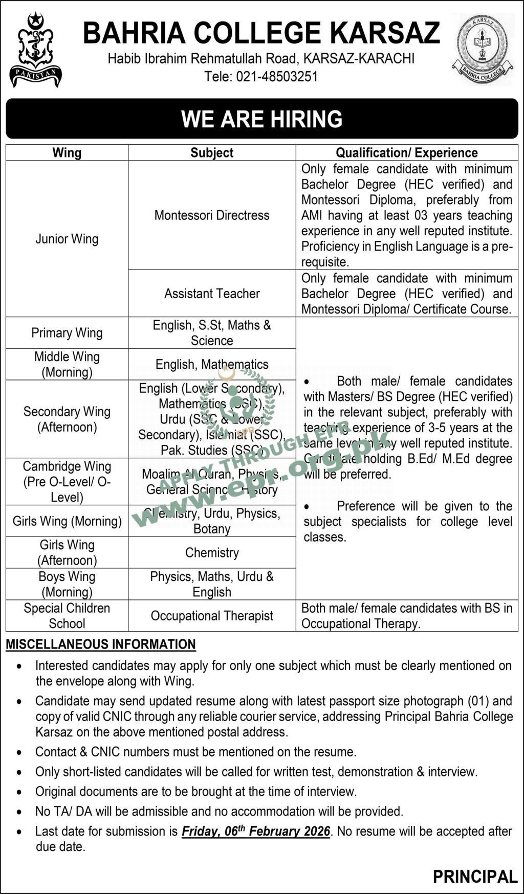 • Master’s/BS in the relevant subject (HEC verified). Preferably 3–5 years of teaching at the same level in a reputed school. B.Ed/M.Ed preferred.