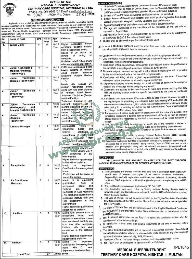Govt. Dept : Tertiary Care Hospital Nishtar - II Multan
