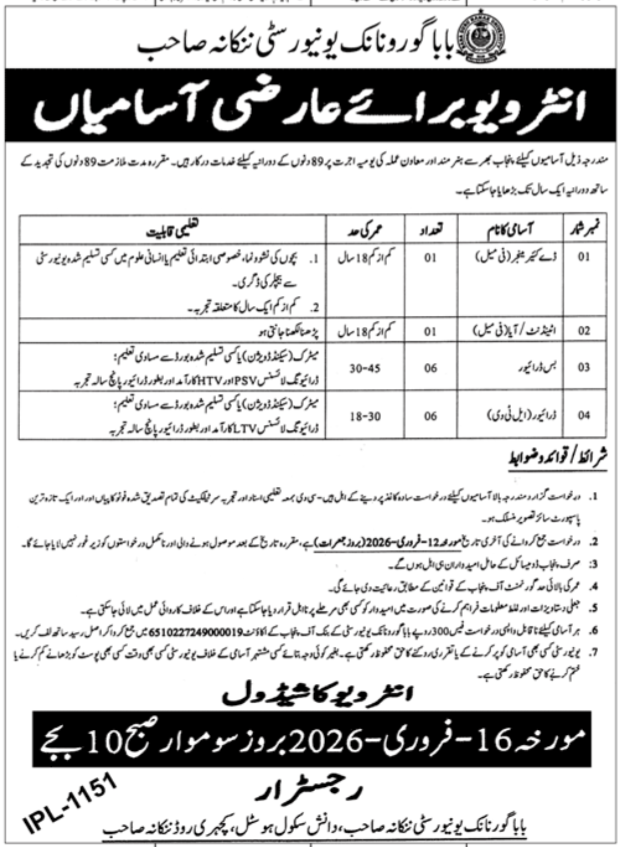 Govt. Dept : Baba Guru Nanak University