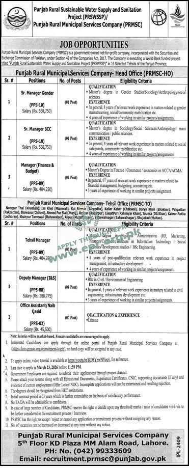 Govt. Dept : Punjab Rural Municipal Services Company (PRMSC)