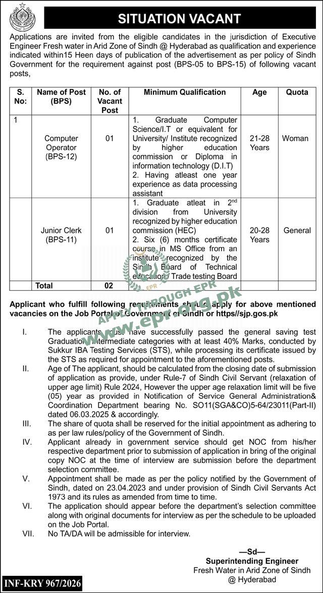 Govt. Dept : Irrigation Department (Fresh Water Arid Zone Hyderabad)