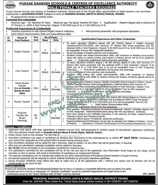 Govt. Dept : Punjab Daanish Schools & Centers of Excellence Authority
