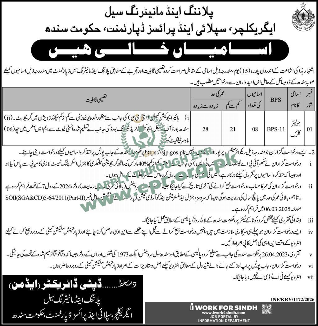 Govt. Dept : Agriculture, Supply and Prices Department, Sindh
